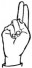 На ћирилици написано БОРИСАВА РАСИНАЦ састоји се из 15 слова [?]. Исписано ћириличном једноручном азбуком за глувонеме: